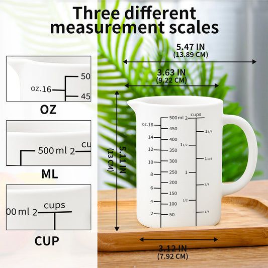 77L Glass Measuring Cup, [Insulated handle, V-Shaped Spout], High Borosilicate Glass Measuring Cup for Kitchen or Restaurant, Easy To Read, 500 ML (0.5 Liter, 2 Cup) White