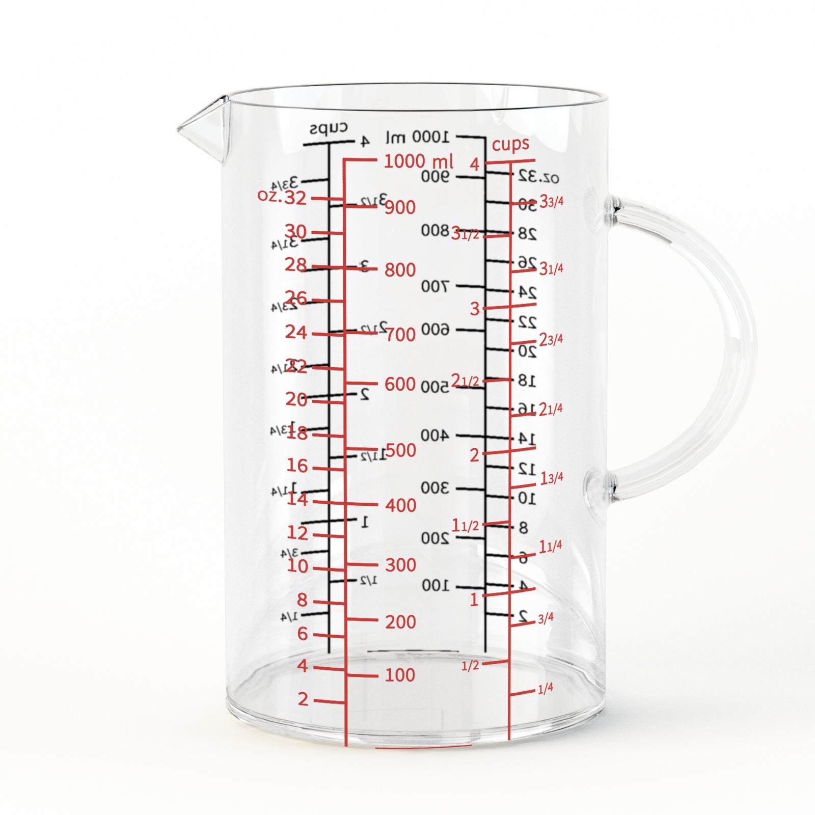 Double-Sided Scale Design: The measuring cup can meet the needs of viewing the measurement value from different angles, it is also suitable for left-handed people. The different color marks (red and black) make it easier for you to read the different of liquids