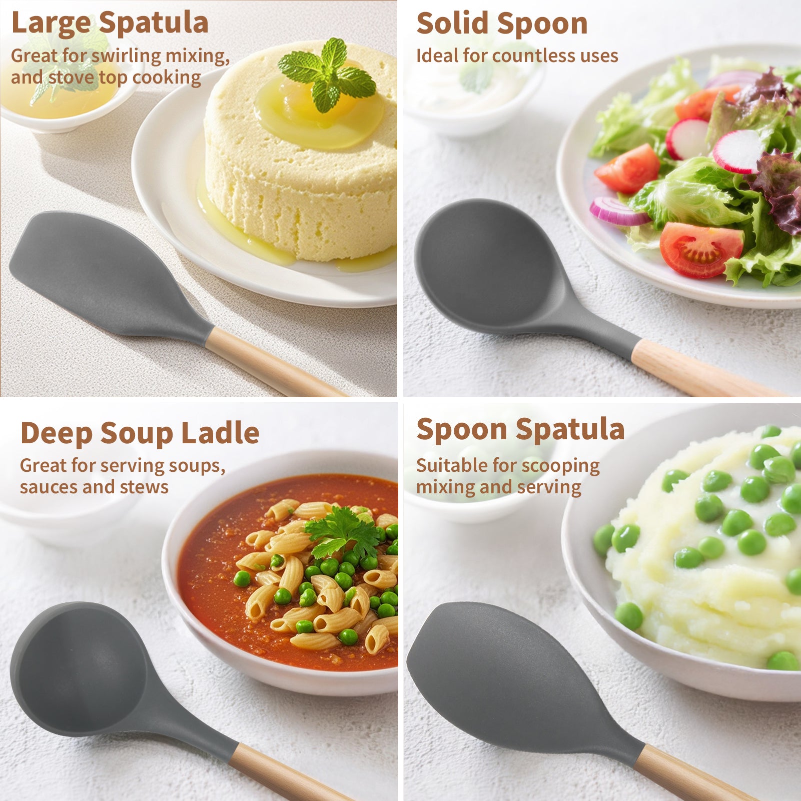77L Kitchen Cooking Utensils Set, 32 PCS Non-Stick Silicone Cooking Kitchen Utensils Spatula Set with Holder, Turner, Tongs, Spatula, Spoon, Wooden Handle Kitchen Gadgets Utensil Set, Dishwasher Safe